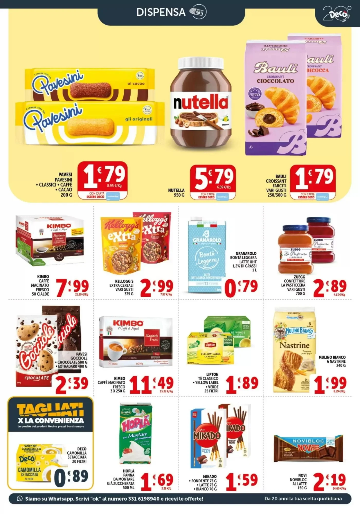 La sezione colazione e dolci del volantino è un vero paradiso per chi ha il palato goloso. Il Bauli Croissant Cioccolato a 1.79€ è perfetto per una colazione veloce ma gustosa, da accompagnare con un cappuccino o un caffè. Per chi ama i cereali, i Kellogg's Extra Cereali Vari Gusti a 2.99€ offrono una scelta tra diverse varianti, ideali per iniziare la giornata con energia. E per i momenti di vera golosità, la Nutella a 5.79€ è un classico intramontabile, perfetto da spalmare sul pane o da utilizzare per preparare dolci. Per le occasioni speciali, l'Uovo di Cioccolato Bauli Grandi Firme a 7.99€ è un'ottima scelta per fare un regalo gradito.