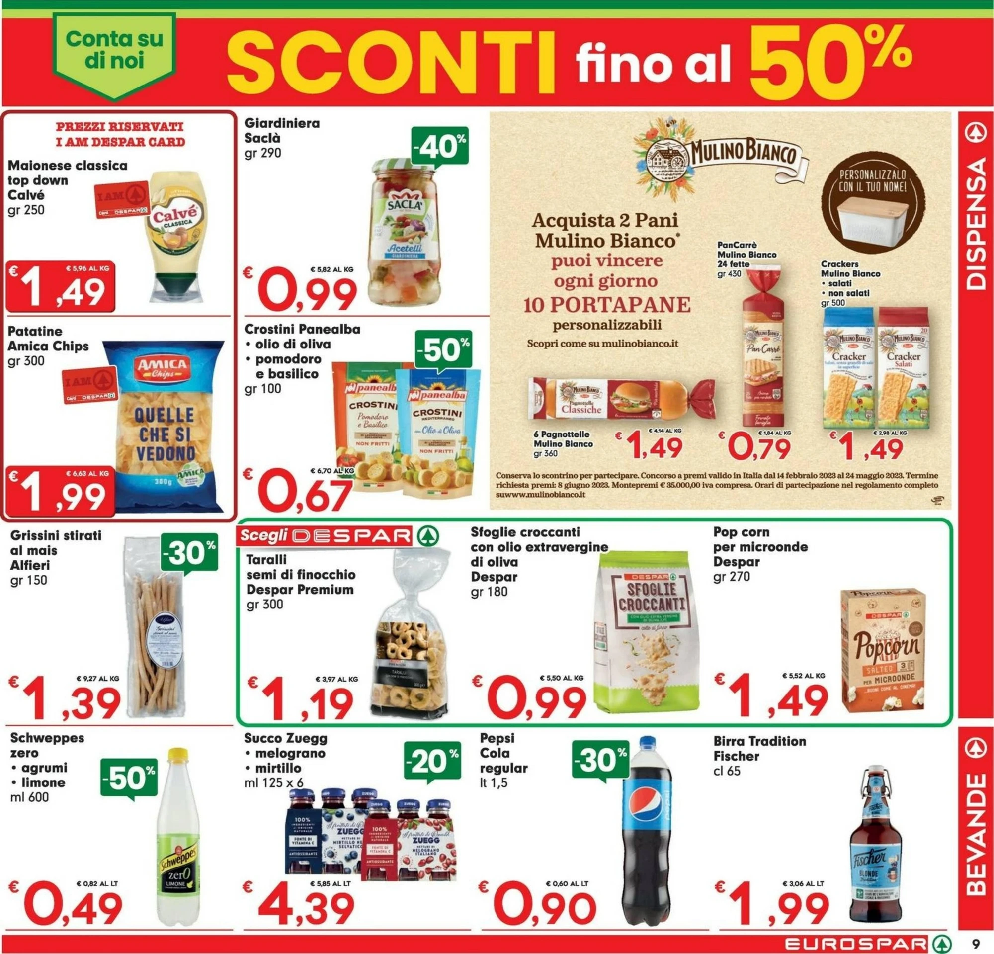 La sezione raccoglie prodotti di vario genere a prezzi davvero sorprendenti. I gnocchi freschi Alfieri a 0,39 € sono perfetti per una cena veloce, mentre i mini croissant Bauli a 0,49 € rendono la colazione più golosa. Anche le bevande come Schweppes Zero agrumi limone sono disponibili a 0,49 €, ideale per chi cerca un’alternativa senza zucchero. Non dimenticare i fagioli Bonduelle a 0,67 € per un contorno ricco di proteine, il pane PanCarre Mulino Bianco a 0,79 € per i panini, e il Pepsi Cola 1,5 lt a 0,90 € per rinfrescarsi. Infine, lo spazzolino Mentadent tecnic clean a 0,94 € è un piccolo investimento per una buona igiene orale.