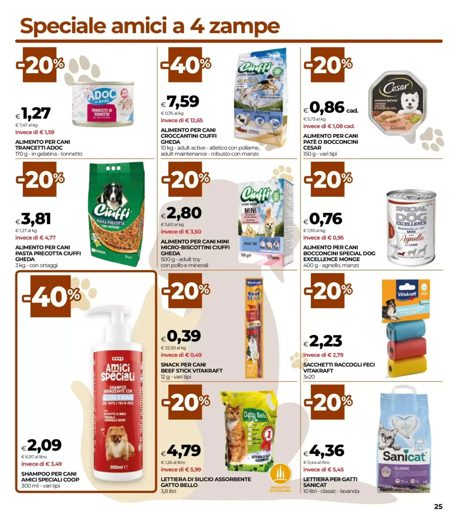 - Alimento per gatti Bocconcini Day by Day 85 g – 0,41 €